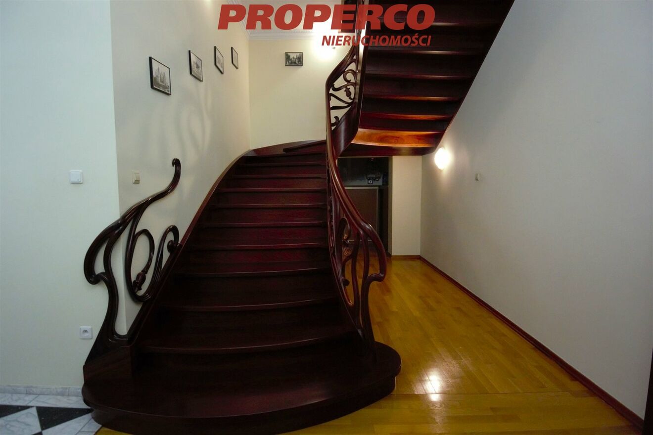 - piętro: 6 pokoi (w tym jeden z kominkiem), łazienka z wanną i WC, hol z wyjściem na taras;