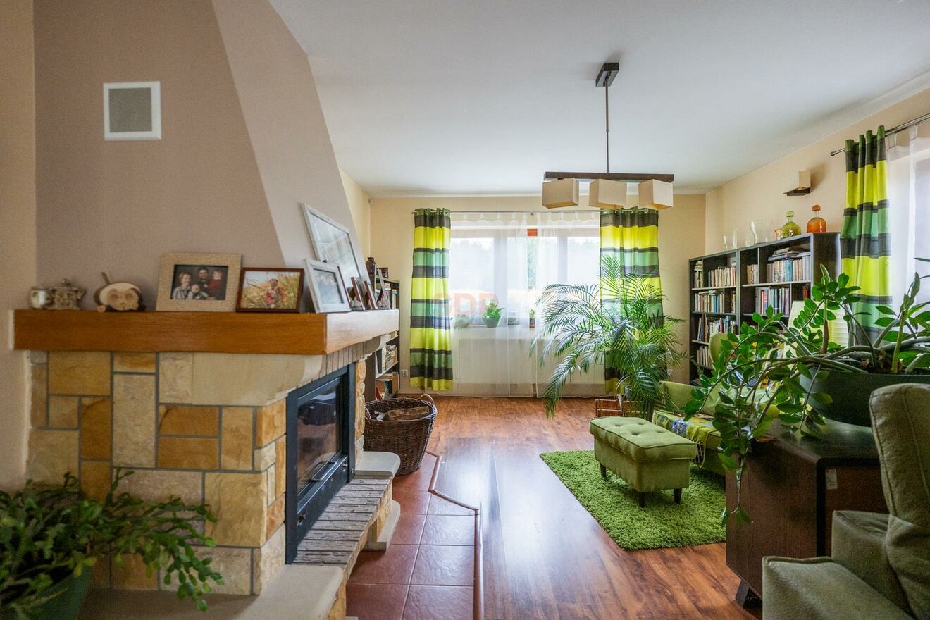 Dom wolnostojący, dwukondygnacyjny o powierzchni 231 m2, 7 pokoi, w tym 5 sypialni, garderoba, 2 łazienki. Ogród zimowy. Na działce wolnostojący murowany garaż na dwa auta o powierzchni ok. 60 m2. Działka o regularnym kształcie prostokąta. Ogrzewanie gazowe oraz kominkiem z płaszczem wodnym. Zadbana działka. Droga asfaltowa, ślepa, lokalna.