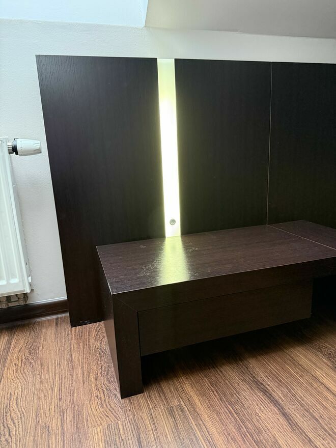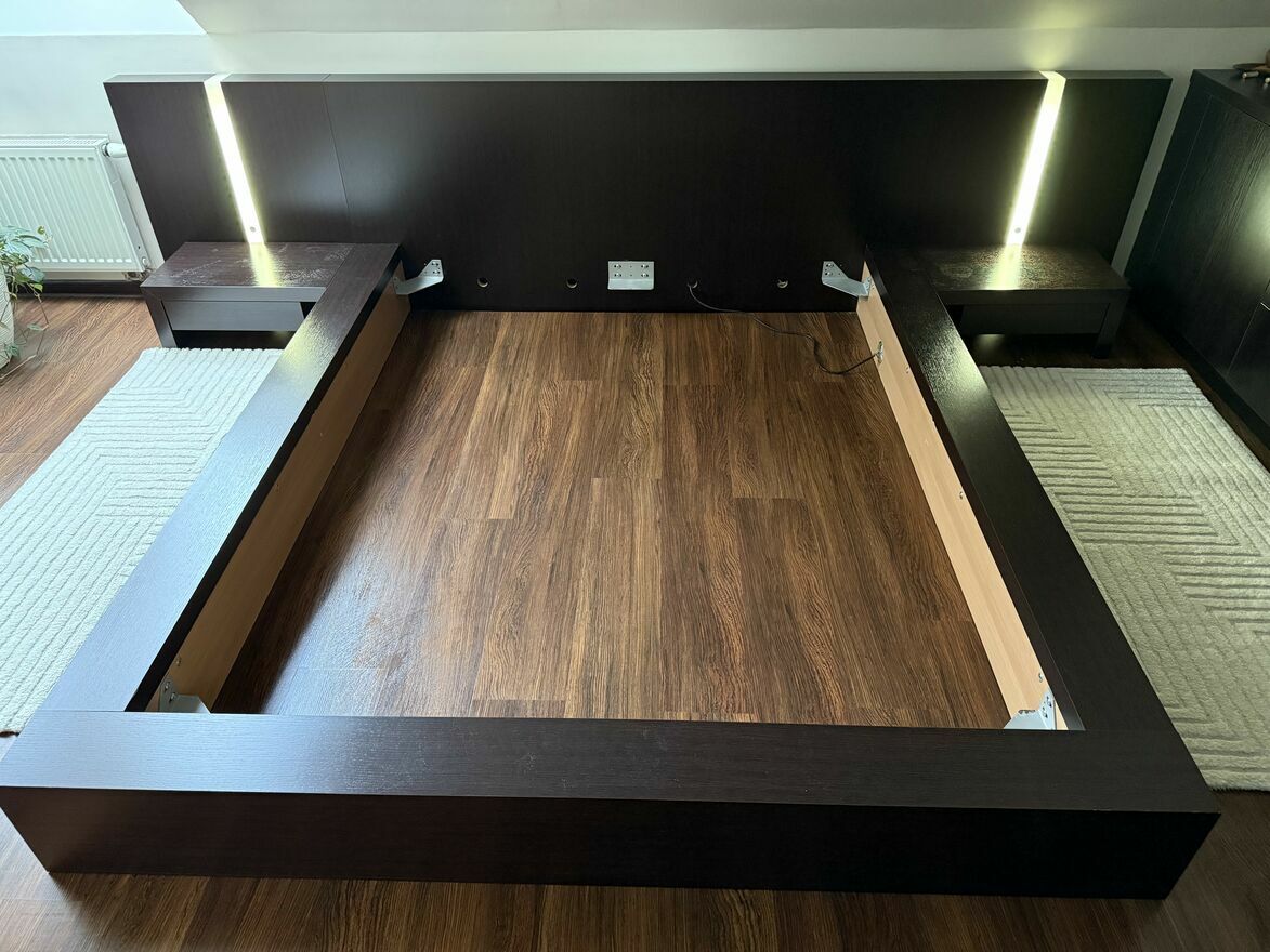 Solidne, łóżko do sypialni z dwoma nocnymi szafeczkami podświetlanymi Wykonane z wysokiej jakości materiałów, zapewniające komfort i trwałość. Jego nowoczesny, minimalistyczny design pasuje do różnych aranżacji wnętrz. Idealne uzupełnienie sypialni i stworzenie przytulnej atmosfery.Sprawdź zainteresowanie tym ogłoszeniem